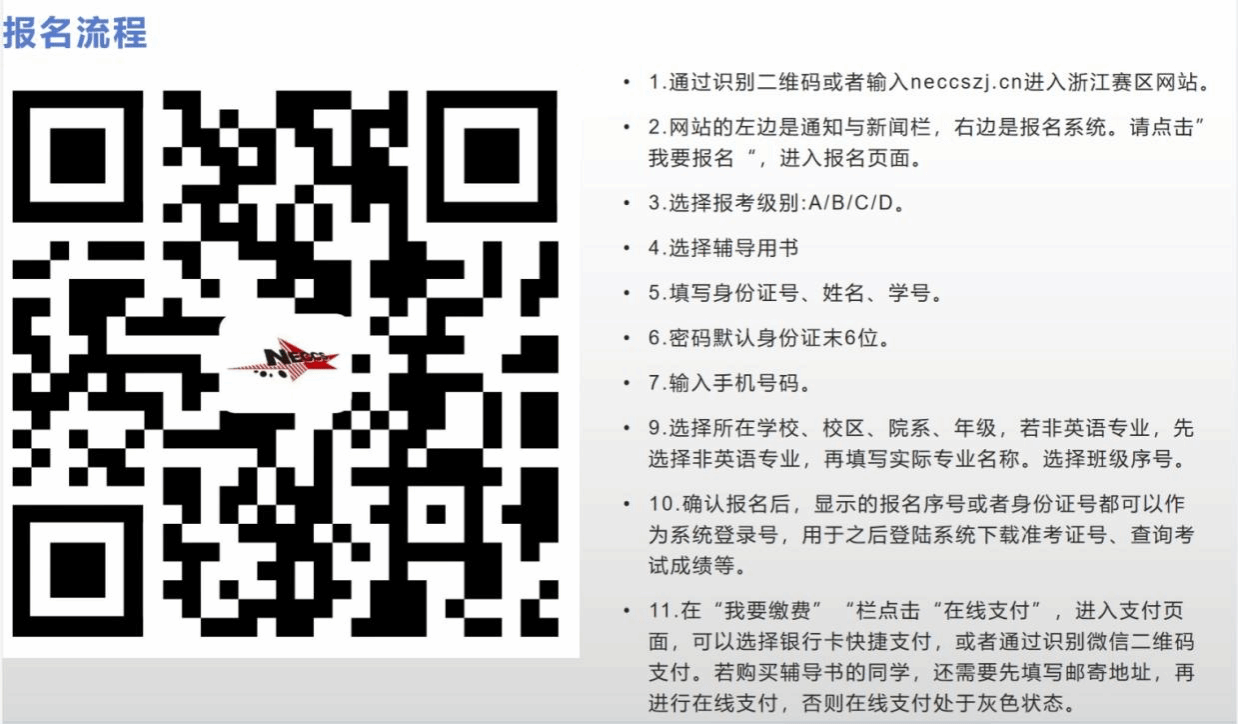 学生报名入口:www.neccszj.cn。或者直接扫二维码报名,报名流程如图: