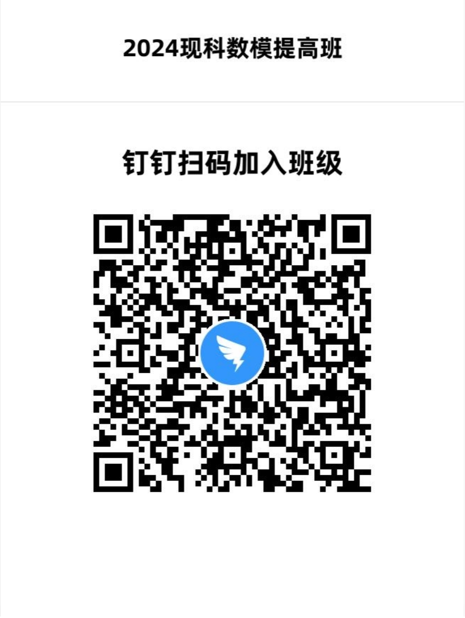 实名(注意:一定要备注班级姓名,如“智能231张三”)加入“2024现科数模提高班”钉钉群(可扫描下面的二维码入群),填写群内报名表,并从群里接收2024现科数模提高班的最新通知信息。