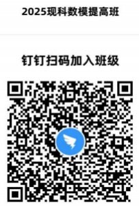 实名(注意:一定要备注专业班级姓名,如“智能 231 张三 ”)加入“2025 现科数模提高班 ”钉钉群(可扫描下面的二维码入群),并填写群内报名表,完 成报名。