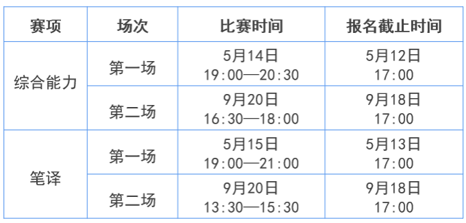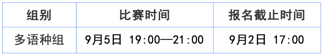 每个语种举办一场公开赛,各语种比赛时间一致。