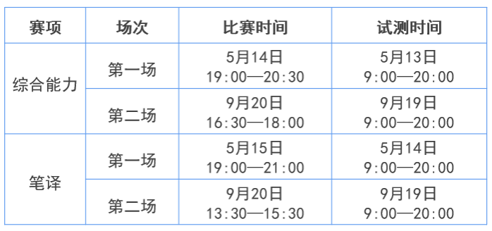 比赛及试测时间如下图所示。