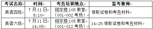 四级考试:7月11日(周六)上午8:00—9:00(考前)